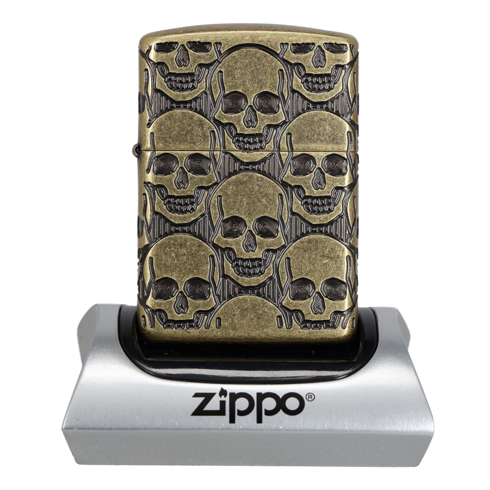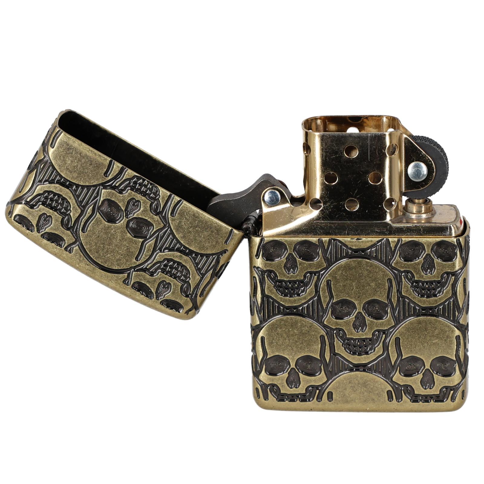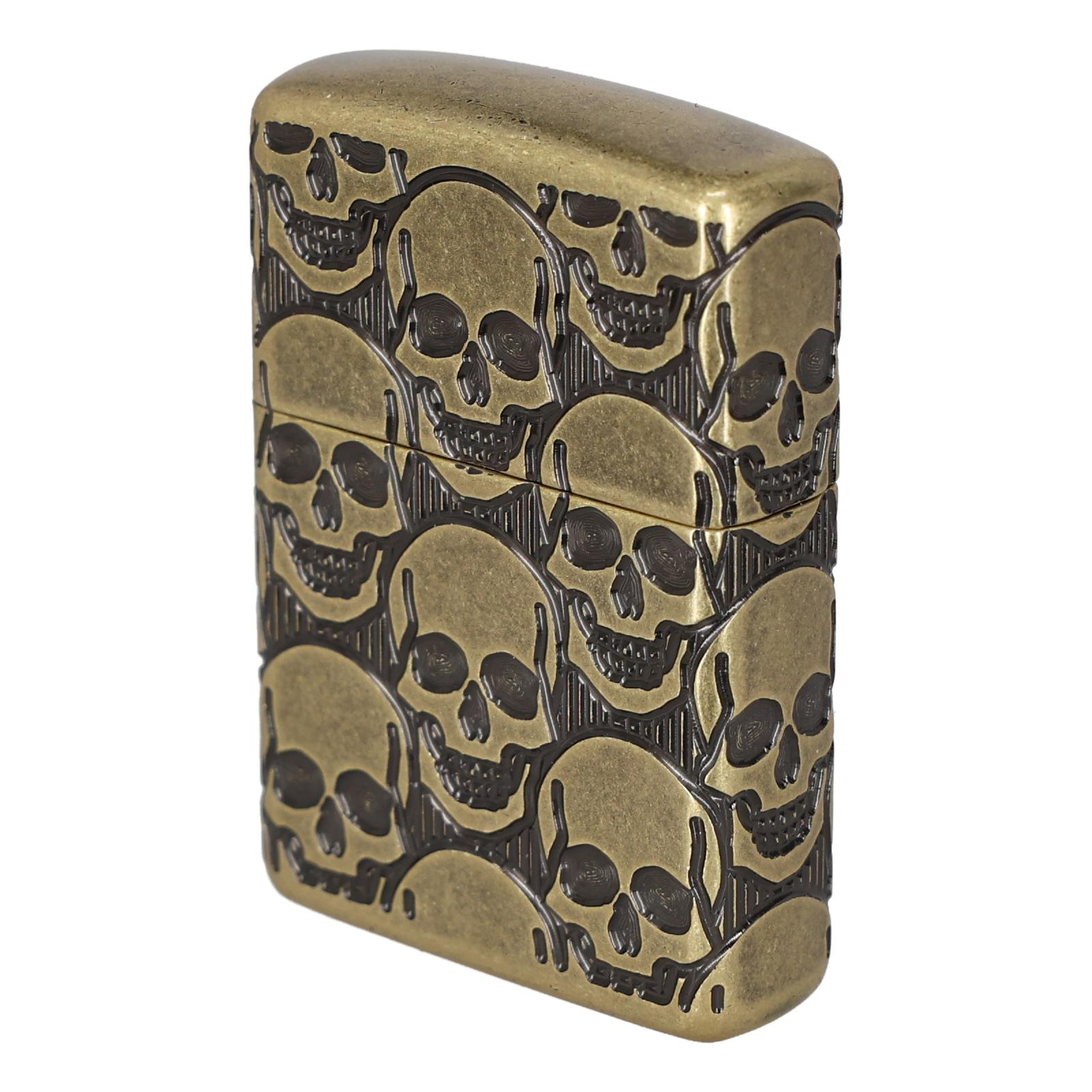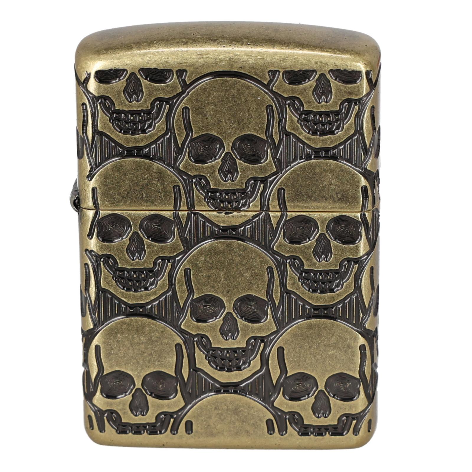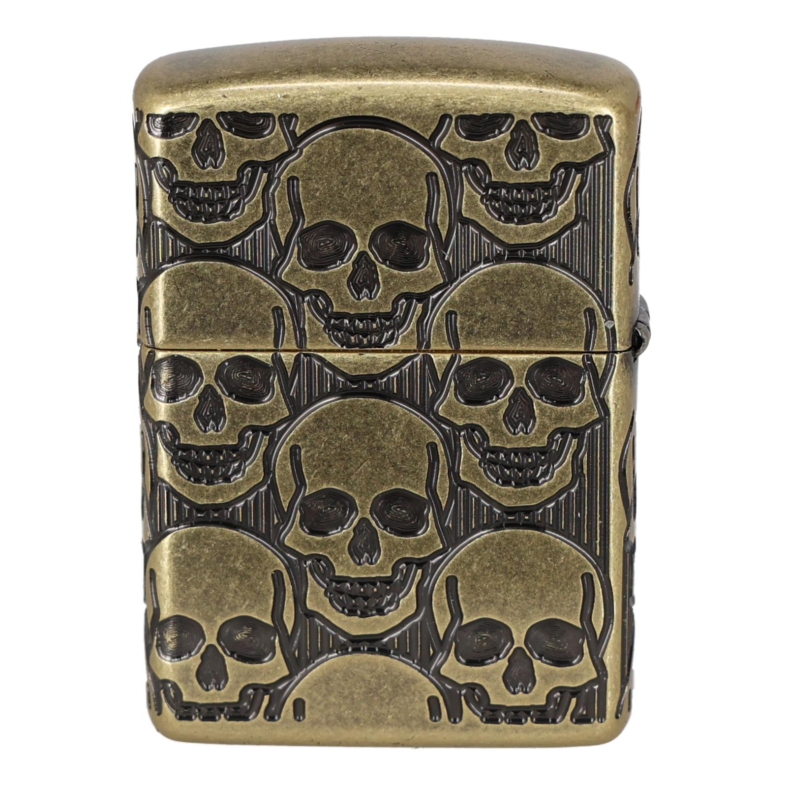 Na powierzchni znajduje się motyw „skull / czaszki” — zapalniczka jest pokryta wieloma czaszkami („grinning skulls / gaggle of skulls”), które „otaczają” korpus z każdej strony.