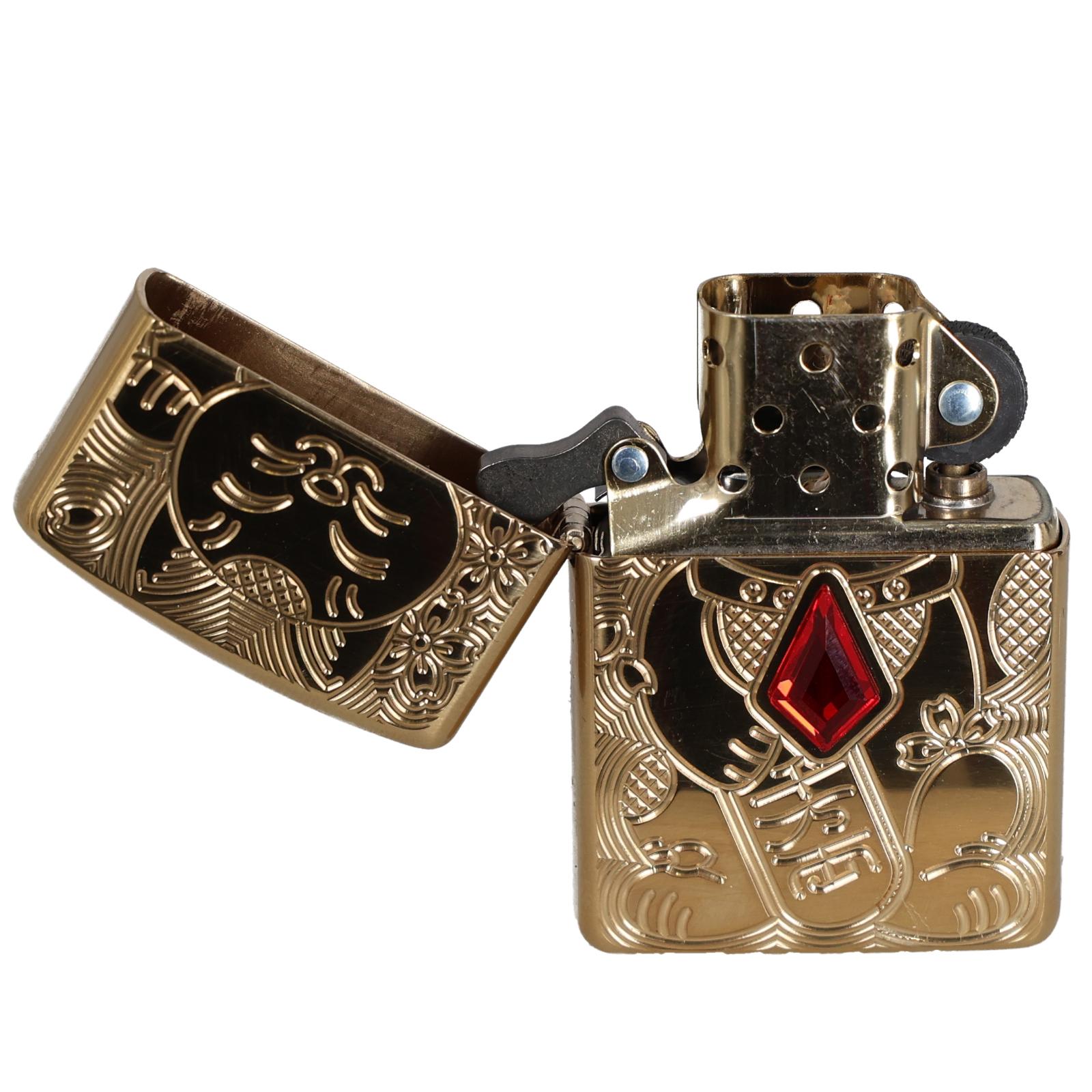 Całość wykończona jest w stylu High Polish Brass — czyli błyszczącej, złocistej powierzchni mosiądzu, która pięknie odbija światło i dodaje zapalniczce elegancji.